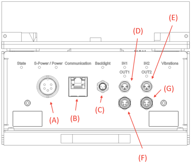 Hinweis: Die S-Spannungsversorgung ist die Sicherheitsspannungsversorgung für die Hintergrundbeleuchtung. Die S-Spannungsversorgung muss unterbrochen werden, um sicherzustellen, dass die Hintergrundbeleuchtung abgeschaltet ist (z.B. zum Schutz vor Gefahren durch eine IR- Hintergrundbeleuchtung). Durch Abschalten dieser Sicherheitsspannungsversorgung wird der Digitalausgang des Bunkers und der und der Digitalausgang für die Entleerung deaktiviert.