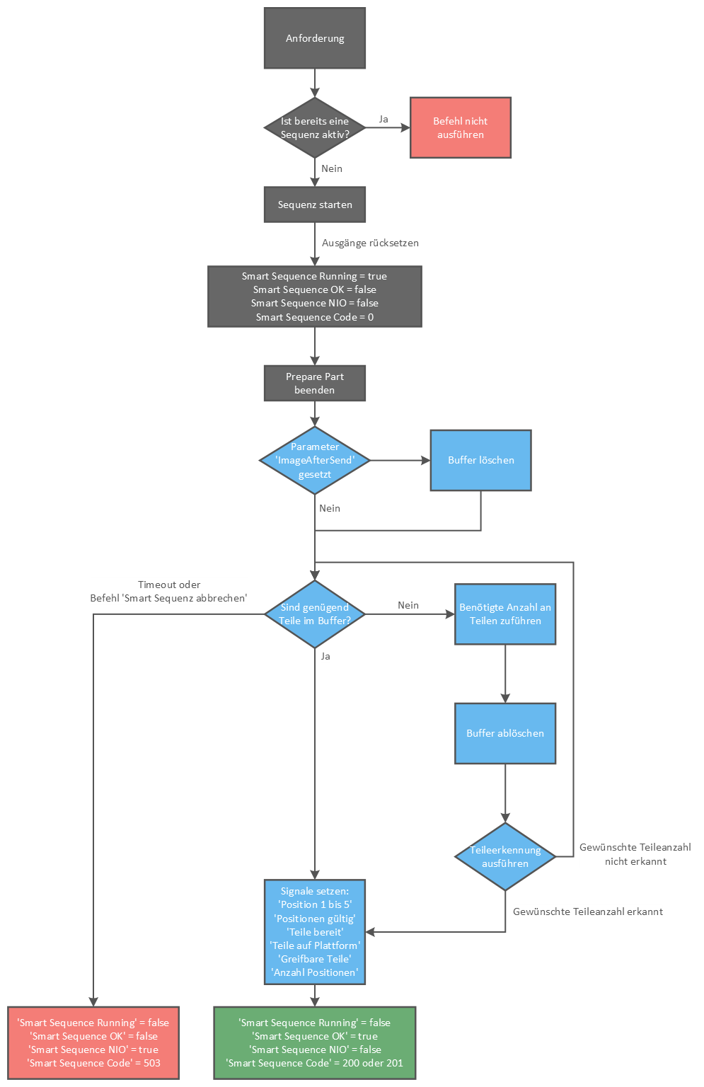 Normaler Betrieb: Wenn die Buffer mindesten die Anzahl an geforderten Teilen enthält, dann werden die Koordinaten direkt über die Schnittstelle ausgegeben.