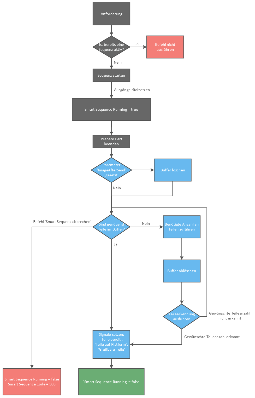 Erste Befehlsausführung: Handelt es sich um die erste Befehlsausführung der gesamten Produktion oder ist der Teile Buffer leer: