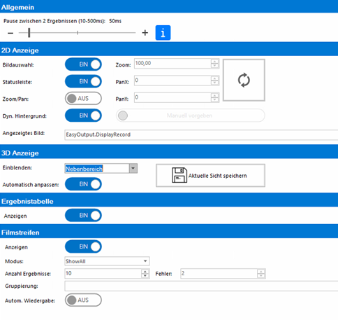 Ergebnisstabelle anzeigen Ein oder Aus