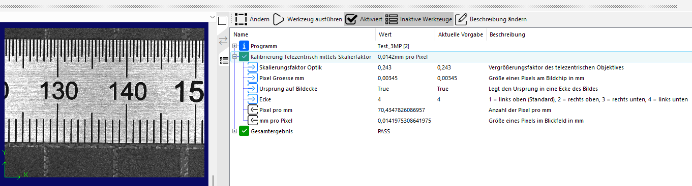 | Skalierungsfaktor Optik | Vergrößerungsfaktor des telezentrischen Objektivs |