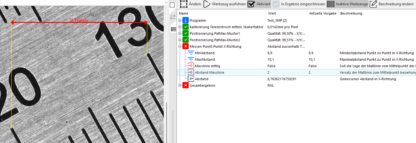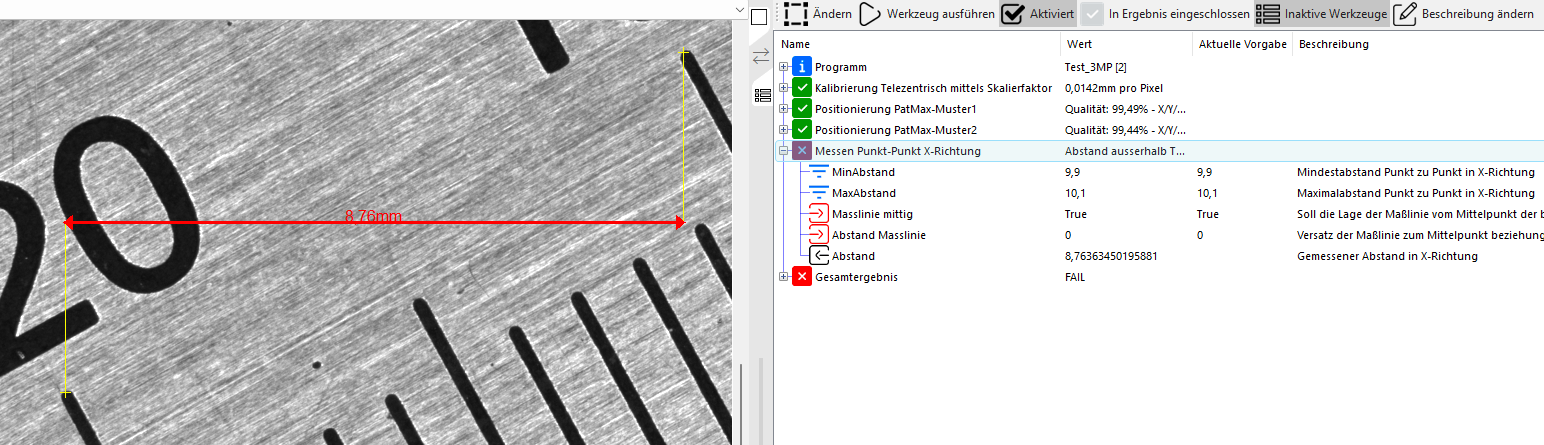 Dieses EasyTool dient zum Messen eines Abstands in X-Richtung zwischen zwei Punkten. Die X-Richtung richtet sich nach dem Koordinatensystem des Eingangsbildes.