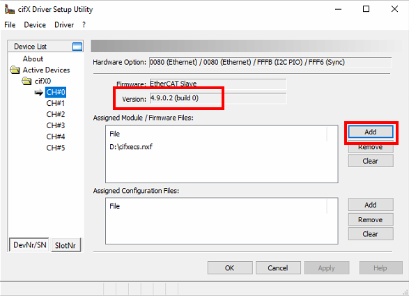 • Neue Firmware cifxpns.nxf aus Update Paket mit Add laden und mit Apply laden