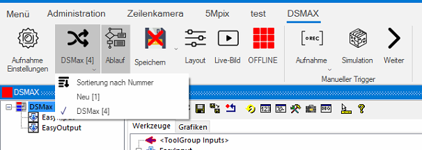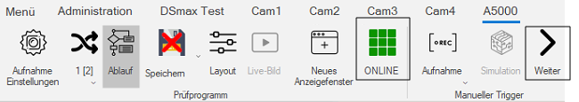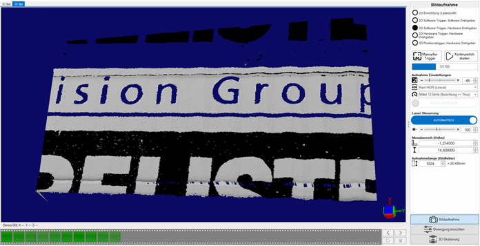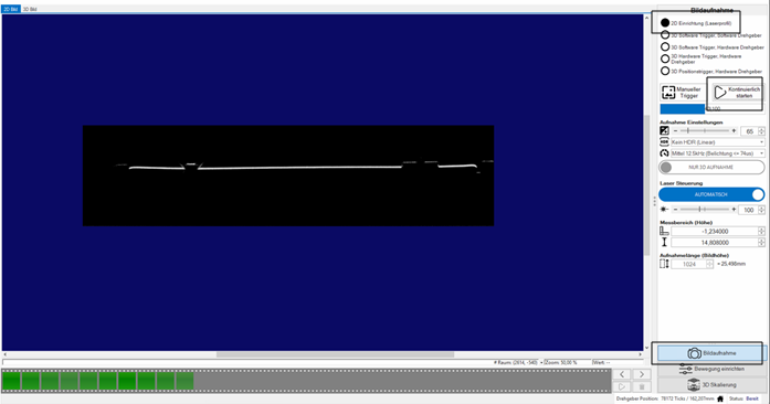 Danach kann die Bildaufnahme gestartet werden. Dazu muss der Sensor Online sein.