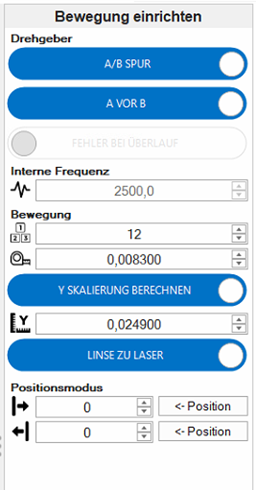 Nun kann können die Encoder-Daten parametriert werden. Dazu rufen wir den Reiter Bewegung einrichten auf:
