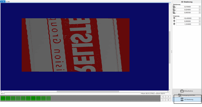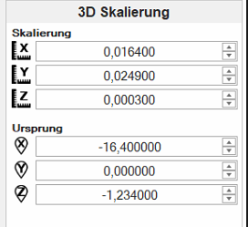 Im letzten Menü 3D-Skalierung kann die Skalierung der Achsen sowie die Ursprungsposition betrachtet und ggfs. angepasst werden.
