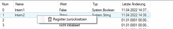 Man kann den Wert und den Namen eines Registereintrags auch direkt in der Liste bearbeiten.