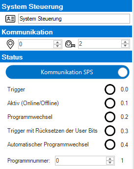 Im Feld "System Steuerung" kann ein Name des Bausteins vergeben werden.