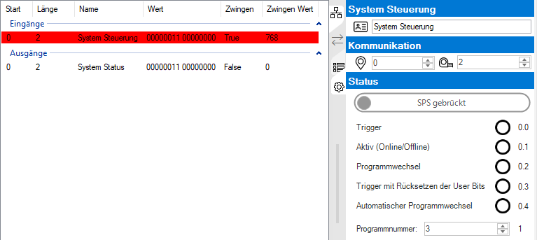 Im Kommunikationsexplorer sieht das Eigenschaftsfenster der System Bits wie folgt aus: