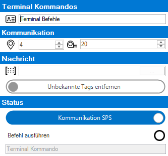 Terminal Kommando 1 - X Hier wird der Befehl als String übertragen. Die verfügbaren Befehle finden sie unter Terminalbefehle.