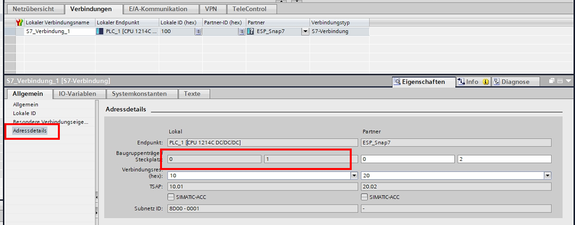| SPS-Adresse falsch konfiguriert |