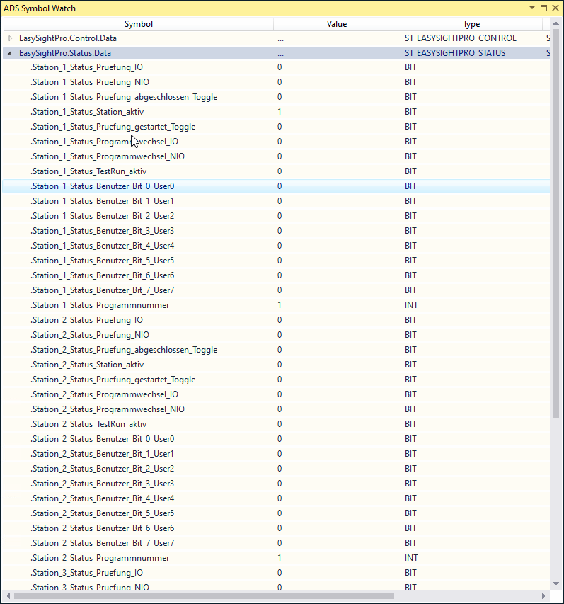Die Online Daten können über EasySightPro.Status.Data bzw. EasySightPro.Control.Data angesehen werden