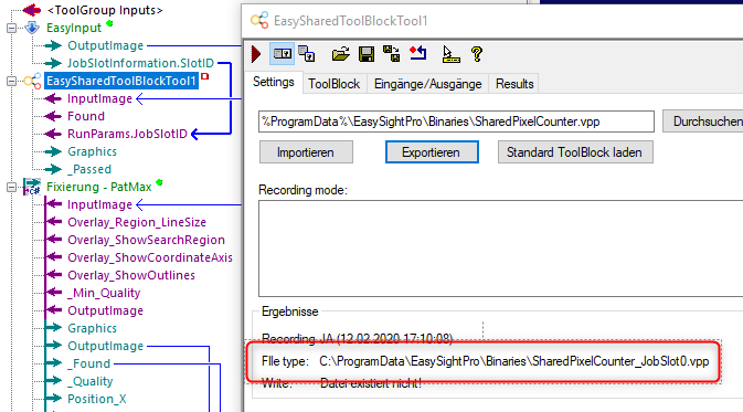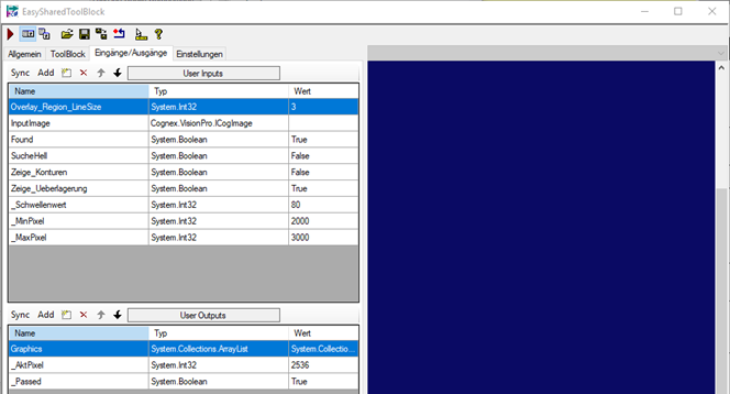 Das EasySharedToolBlockTool kapselt einen Cognex CogToolBlock, damit dieser in der Laufzeit dynamisch geladen/geändert/gespeichert werden kann.