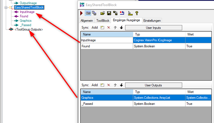 Hier werden die Eingänge und Ausgänge des EasySharedToolBlockTools angelegt.