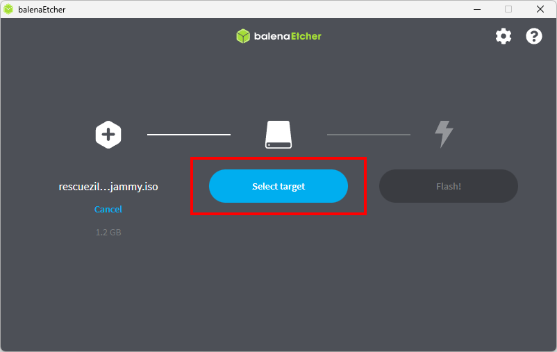 Auswahl mit "Flash from File" öffnen und Rescuezilla Iso selektieren