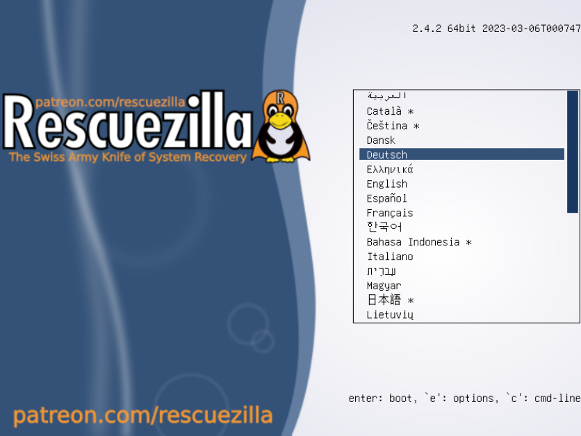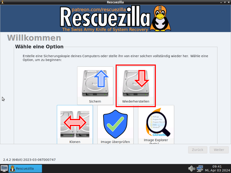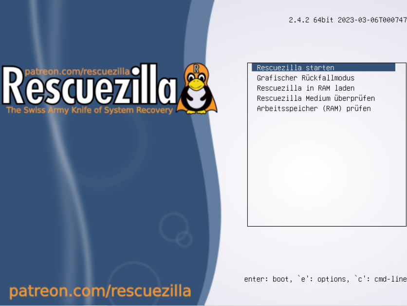 "Rescuezilla starten" auswählen