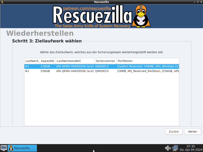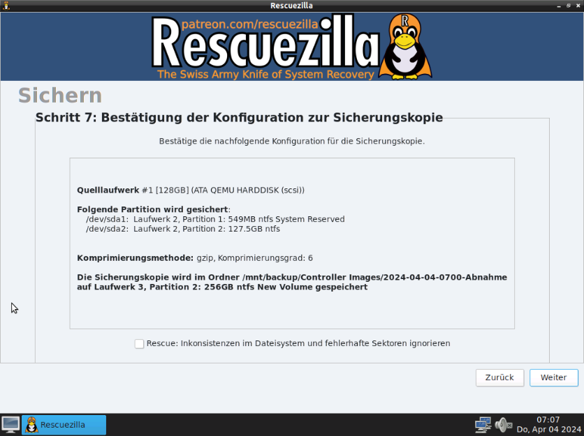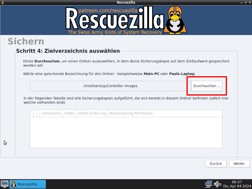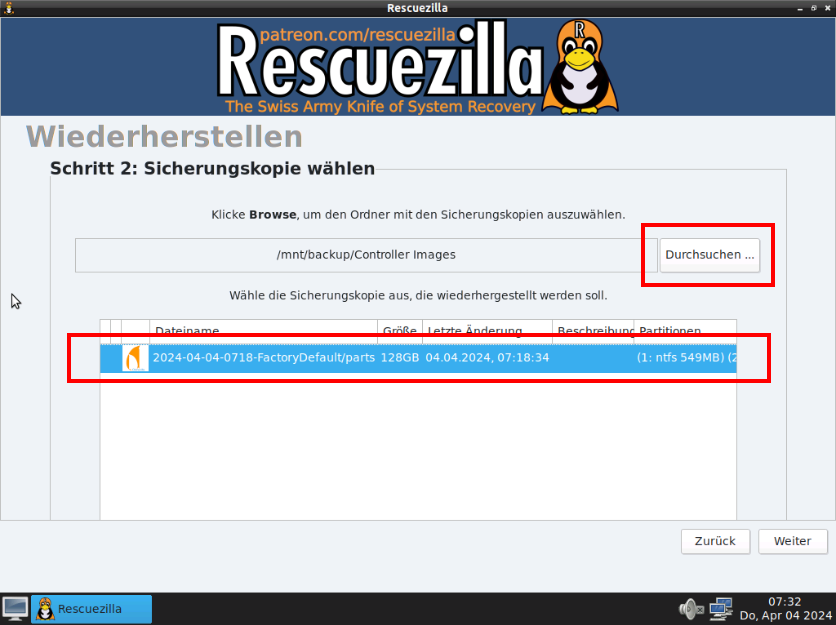Controller mit Rescuezilla Stick starten