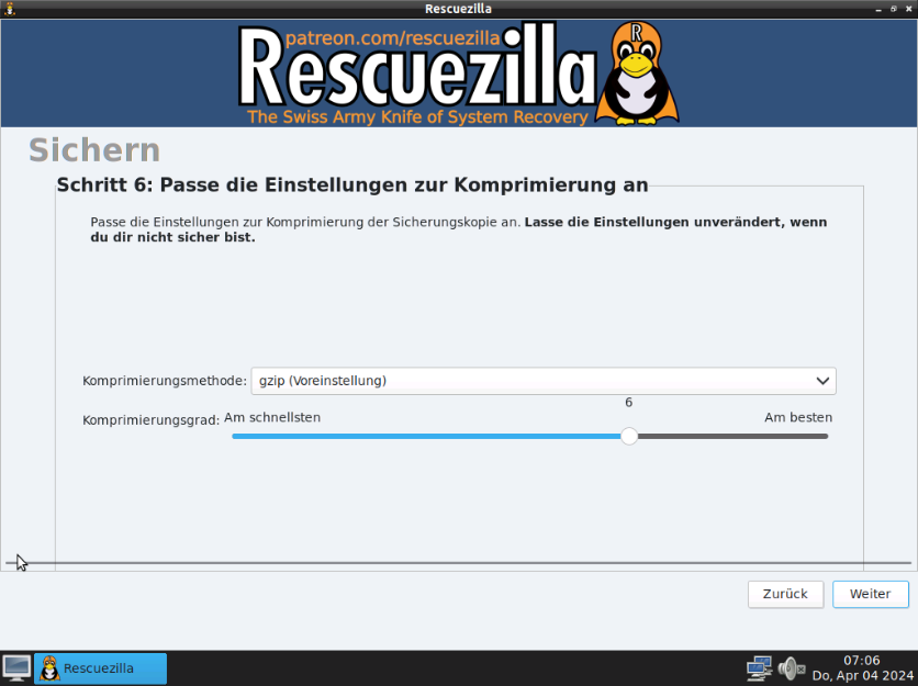 Schritt 6: Komprimierung aus Standard Einstellungen belassen.