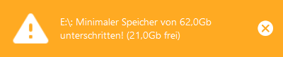 EasySightPro®13.0.4 überwacht automatisch die Rest-Kapazität von allen angeschlossenen Festplatten und SSDs und benachrichtigt automatisch per Pop-up, wenn der eingestellte minimale Speicher unterschritten wird.