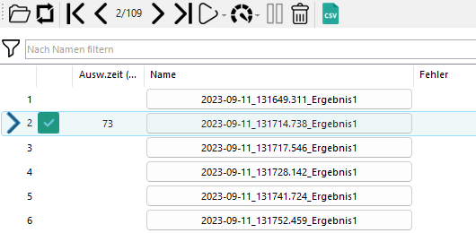 Daten durch Klick auf den Namen in die Auswertung laden