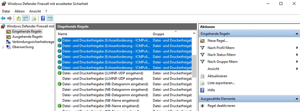 Alle Regeln mit dem Namen "Datei- und Druckerfreigabe (Echoanforderungen..)" freischalten