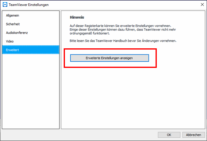 Erweiterte Einstellungen konnfigurieren