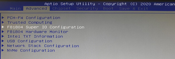2.) Menü Punkt „F81804 Super IO Configuration“