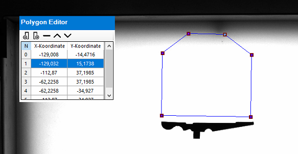 Information: While editing inspection regions, you can click on a part in the table to switch to its regions.