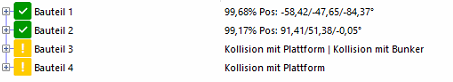 In this example, 2 parts are reachable and 2 parts have a collision with the platform and the hopper.