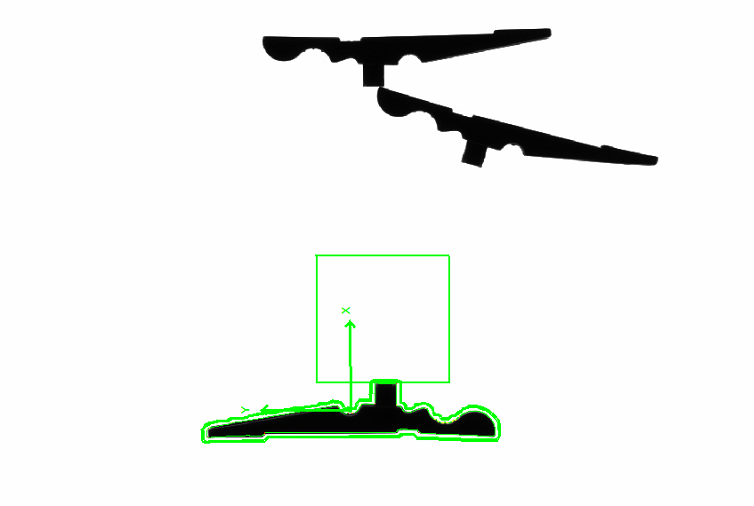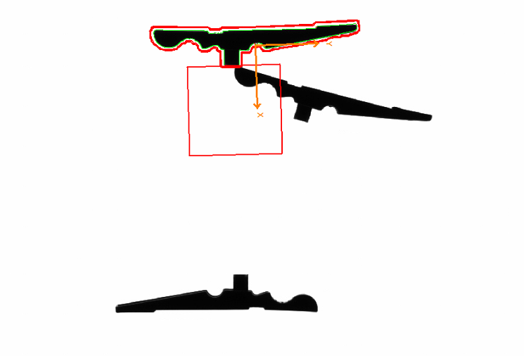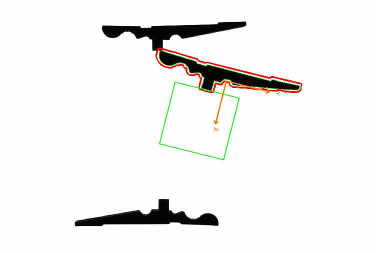 In this example, a feature of the part is checked for presence so that only the desired feature is selected if different types are mixed. The inspection area was placed on a unique feature for this purpose.