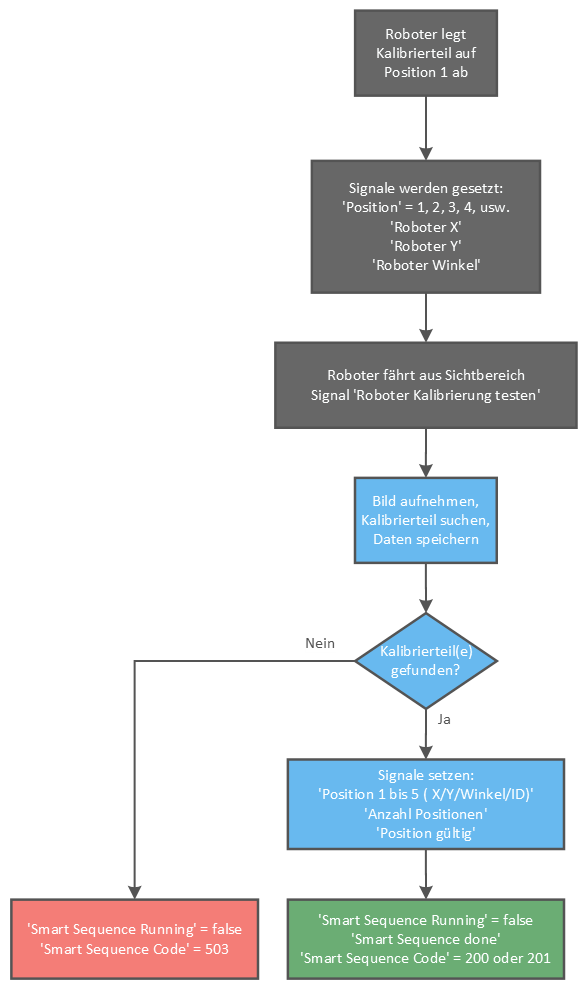 Tests the robot calibration by placing the calibration part at any position and having it recognised by the camera system. The deviation between the deposit position and the recognised position should be as small as possible.