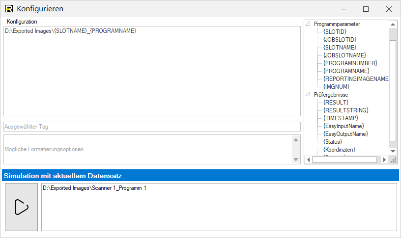 The target folder and file name can be generated from the loaded test results using a dynamic tag. This enables very simple and flexible parameterisation.