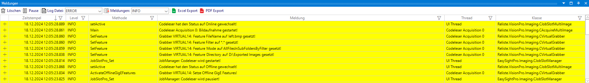 Information: The EasyLogViewer is available for a comprehensive diagnosis. In addition to the EasySightPro® messages, it contains further information (system logs, deep learning logs, etc..)