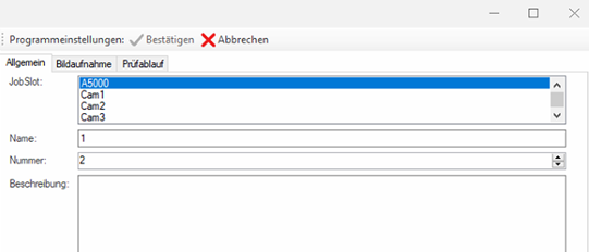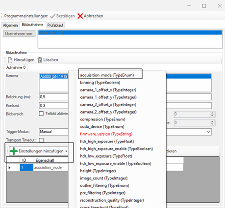 These settings can be overwritten by any inspection program. For this purpose, the corresponding parameter can be added and changed via the program management.