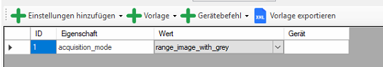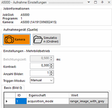 This is set to "Range Image with Grey" if 3D and grey image are to be captured.