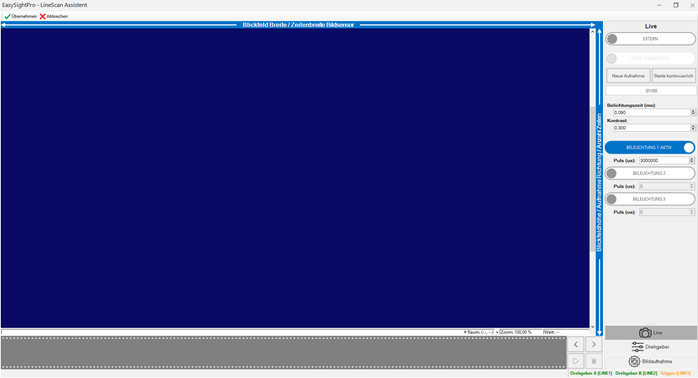 The Dalsa Linea line scan camera is parameterized in EasySightPro®ing the setup wizard. This takes over the correct configuration of all camera functions in the background.