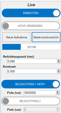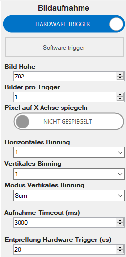 | Hardware Trigger | Activates the hardware trigger. Alternatively, the software trigger (triggering controlled via EasySightPro®). |