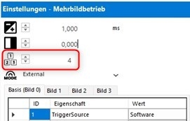 It is possible to take several exposures with one trigger signal with one camera. Between the different exposures, the exposure time and/or illumination control can be changed..