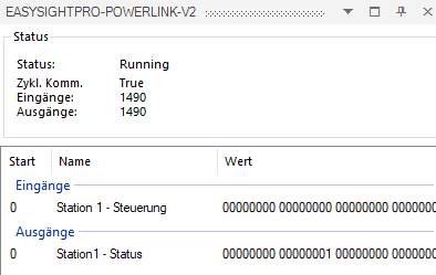 Here the status and values of the inputs and outputs of the Powerlink communication can be monitored.