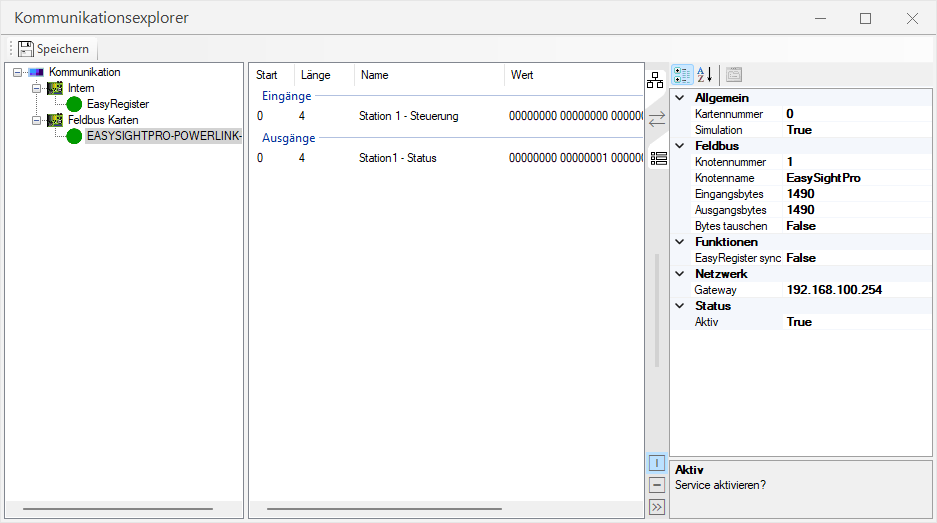 To do this, select the corresponding fieldbus card on the left in order to then be able to make the corresponding settings in the right part of the communication explorer.