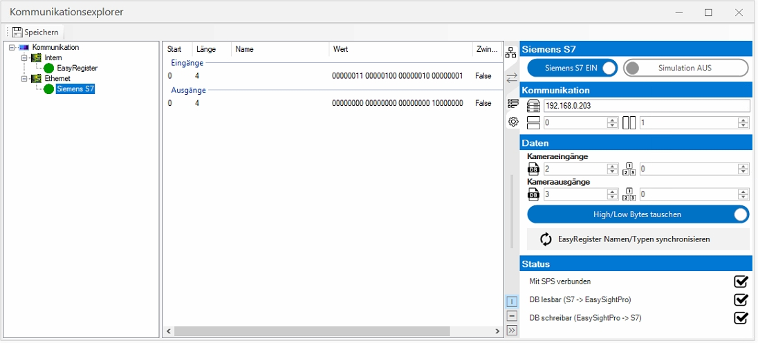 Information: The S7 protocol is the backbone of Siemens communication. Its Ethernet implementation is based on ISO TCP (RFC1006). This module is based on the implementation of Snap7. EasySightPro® takes over the synchronization of the data for inputs and outputs in the implementation.